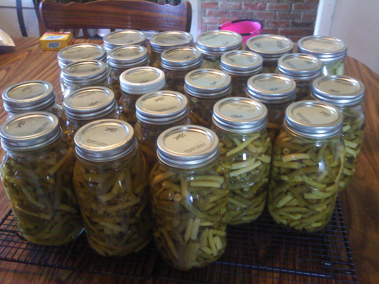 I think I ended up with about 15 quarts of pickles (not pictured)In between the above picture and the next one, I did more beans and pickles, and then just yesterday, I did a third batch of beans for 18 quarts, and a small batch of pickles netted another 5 quarts (back row of below pic).