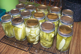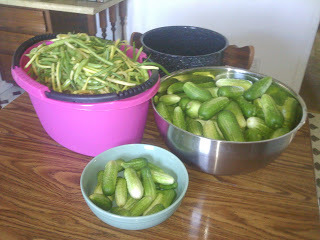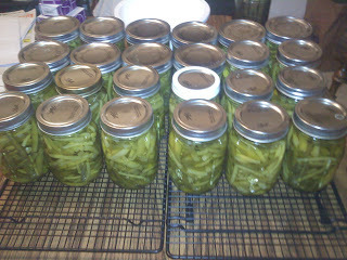 With the 18 quarts of beans yesterday, and my previous batches, that gives me the equilivent of 100 pints for the year, which is just enough for this hungry family of 5. For pickles, I'm up to 40 quarts and 12 pints. Those we share with family.