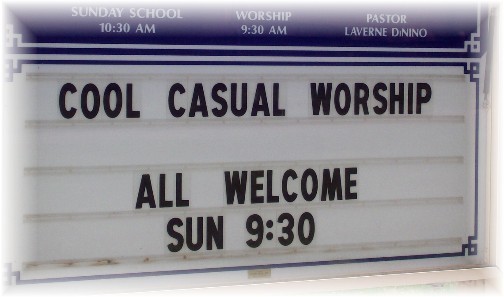 Maybe I am an old fuddy duddy, but it seems to me that we should never use the word “casual” as an adjective for worship. I know what is meant by it, or at least I think I do. It seems that churches put this descriptor on their lighted marquee sign to announce to the world, “how you are dressed doesn’t matter here.” Or they are trying to convey to a culture that is obsessed with the comfortable that their service isn’t traditional or firm or stiff or joyless. If this is the case, then I say, “Let the sign say that.” I would have no problem with a church announcing on its sign, “Our 10:30 service at Crossroads Presbyterian is a “non-stiff” service.” Just don’t call it casual.