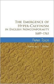 Peter Toon, The Emergence of Hyper-Calvinism in English Nonconformity 1689-1765 (Wipf and Stock, 2011 [1967]). Provides an excellent definition of Hyper-Calvinism and details on its historical development (see earlier post here). The section on antinomianism is also valuable in seeing the difference between ethical antinomianism and doctrinal antinomianism. On the latter, Toon says about one antinomian: "He believed that the law served a useful purpose in convincing men of their need of a Saviour; nevertheless, he gave it little or no place in the life of a Christian since he held that 'free grace is the teacher of good works.'" By this definition antinomianism is not dead.