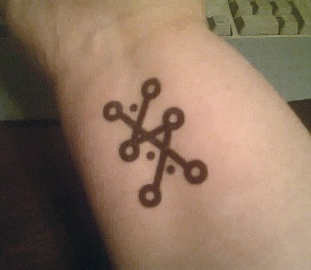 HOWEVER - The publisher did send out some really fun promotional gear. Temporary tattoos of the symbols on the skin map. They asked us to post a few on social media before the tour. I posted to both Facebook and Twitter. Here's the link to see the pictures in my Twitter post .
