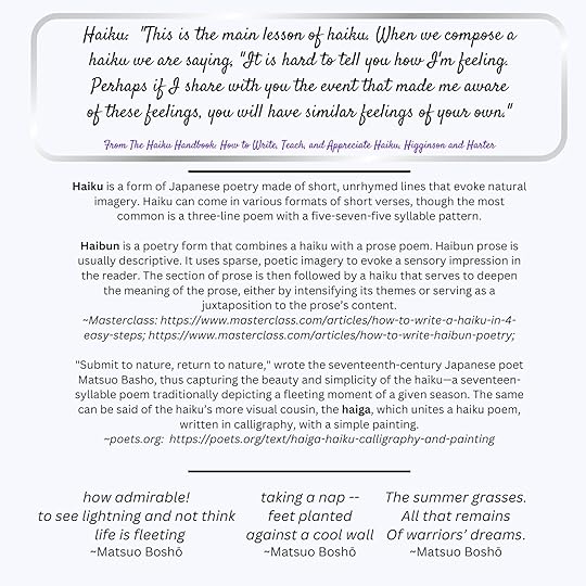 This is a recording (our thirty-first) of our monthly haiku reading and narratives.