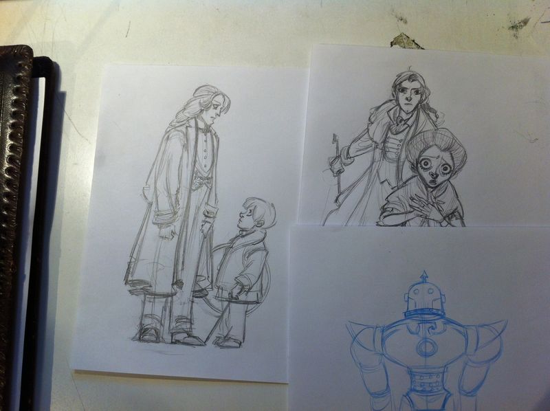 Couleurs pour Ashrel et croquis de recherches pour le projet steampunk! Voilà quelques photos prises rapido ce matin!
