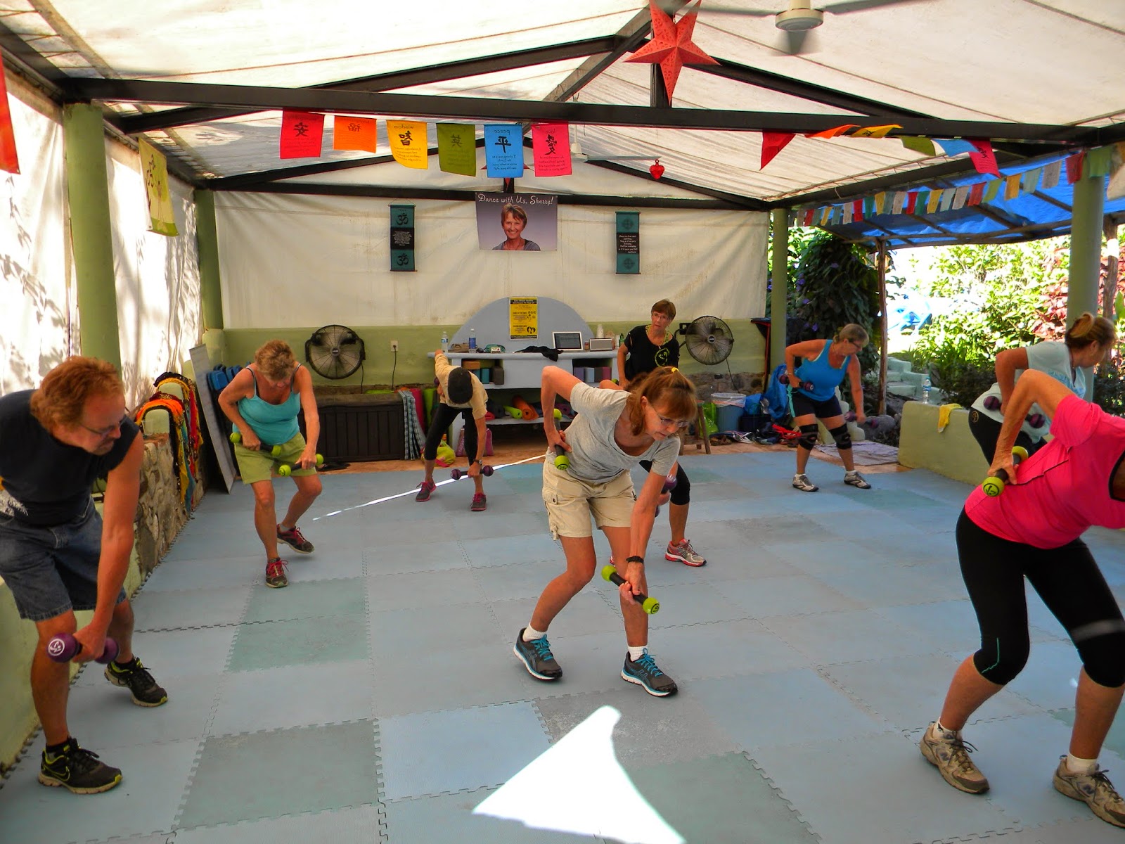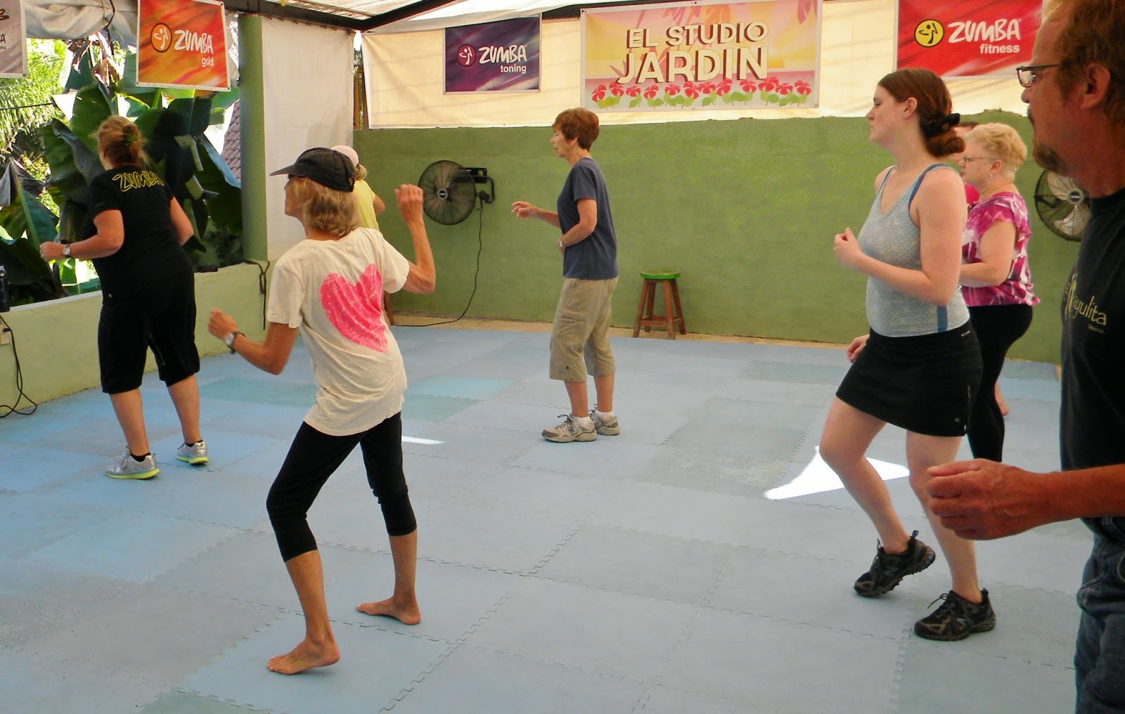 Estudio El Jardin , Micki’s Zumba studio is located on the corner of Manual Navarette and Calle Caracol. To find it, pass the Iguana Refuge Tree and keep going up the cobbled driveway to the first gate. The cost is 50 pesos (about $3.50 US) per class, or you can purchase a card for 5 classes at 200 pesos and get the 6th class gratis.