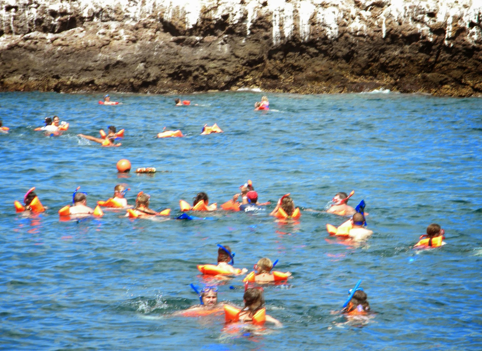 Time to Lounge Around & Sunbath On the boat ride out to Marieta Island, there was plenty of time to lounge on the decks, either sunbathing in the open areas or relaxing in the shade. The crew was very attentive, making sure everyone always had their drink of choice in hand. Snacks and lunch were served throughout the day so we felt pampered and satisfied. The gentle motion of the boat as we motored the 20 nautical miles out to sea lulled us all into a state of lazy contentment.