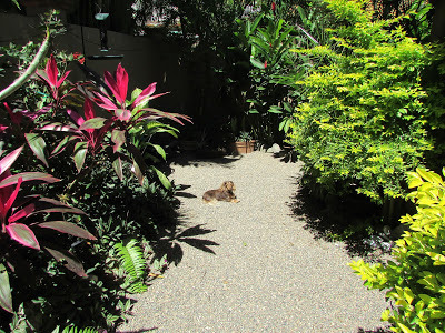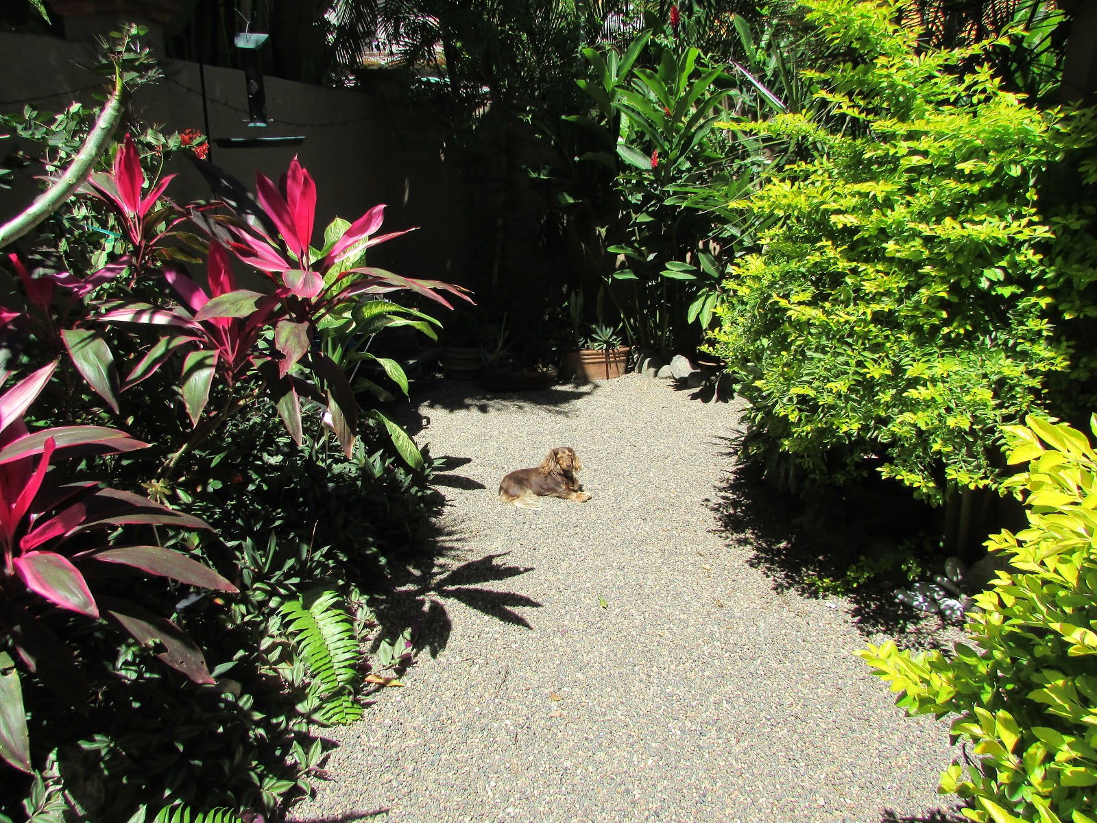 Jon and Terry Enjoying Lunch at Hacienda de Oro One trail led from the Hacienda de Oro through a delightful rock garden with colorful, exotic tropical plants that I had never seen before. Many were labeled with their botanical names.