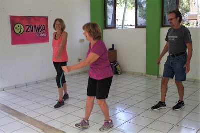 I Look Forward to the Salsa Dance Lessons--Great Fun! Jon would rather watch football than Salsa dance, so he has reconciled himself to watching from his seat, alternating between the screen and keeping an eye on the dance floor, while I dance with a few experienced Mexican men. Sometimes I will join a couple of women on the dance floor and we do some free-form Salsa dancing in a group. It’s all fun. My legs sure feel it the next day, especially since I also taught Zumba class that morning. No wonder my Fitbit reads over 14,000 steps for Monday!
