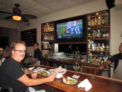 When the Band Starts Playing, the Dancing Starts, Too The Cuban band starts playing about 8:30 and the dancers quickly fill the dance floor. Don Pedro's has a cover charge, but when we come early for dinner and football, we avoid paying the cover. A few warm-up songs into the playlist and the announcement is called for everyone to join the Salsa lesson. That's when I move onto the dance floor along with many others, men and women alike. The dance teachers, a couple of young men, dance in the front with their backs to the crowd, demonstrating basic Salsa steps while all the dancers, inexperienced and professional alike, follow their moves. Soon the dance teachers progress into some pretty fancy Salsa variations. Most of us in the crowd continue to attempt to reproduce their every move, though some drop out and just watch in amazement. Salsa dancing is not only fun, it's amazing exercise.