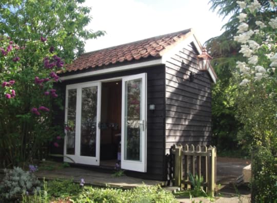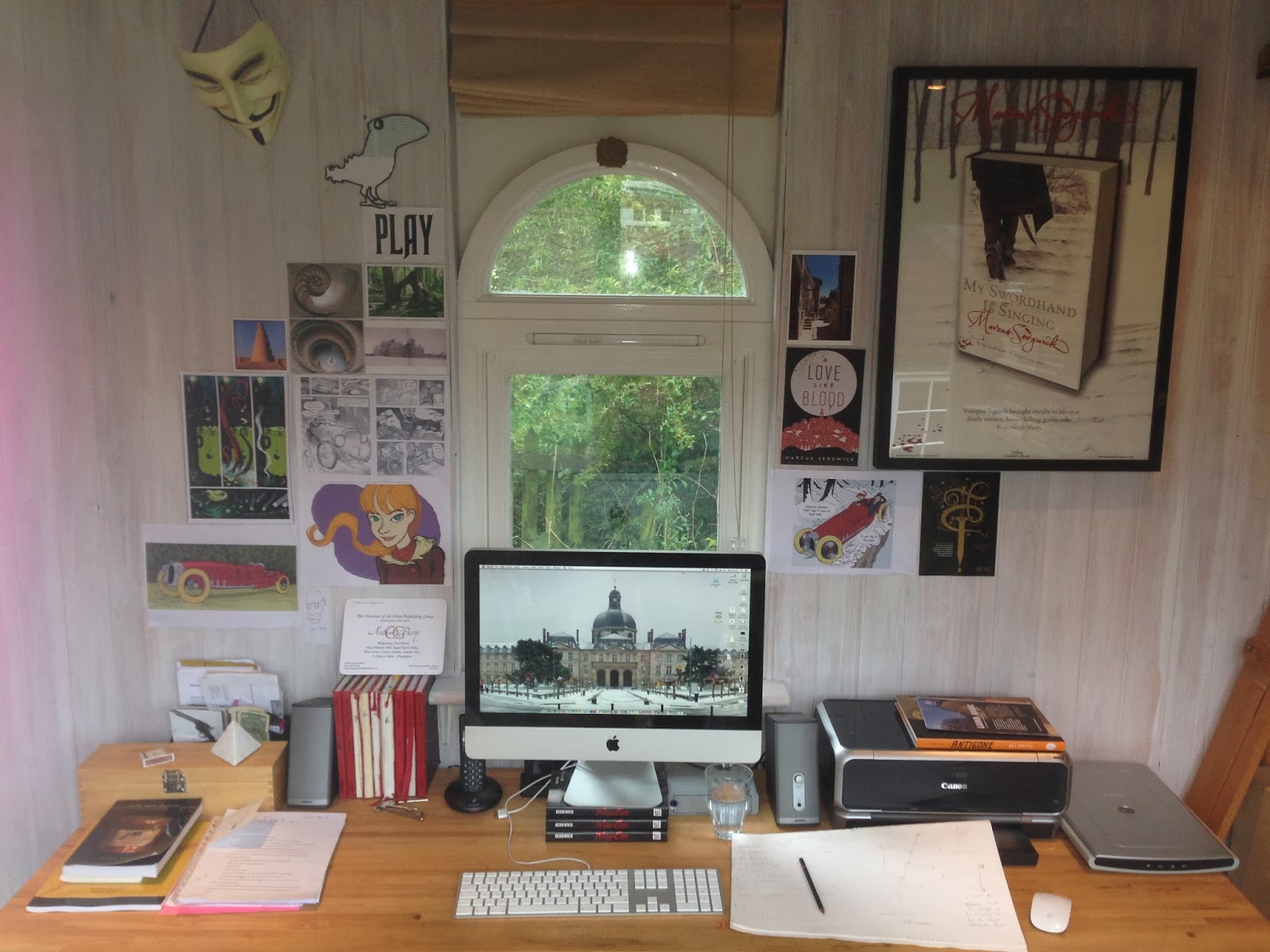 A few years ago I moved back to Cambridge: when I saw this shed in the garden of one of the houses I was viewing, I put an offer in on the spot. Like most writers, I’ve had to work in all sorts of inappropriate spaces, and, like most writers, always craved the perfect place to work.