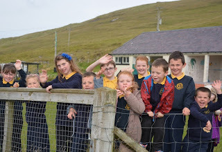I'm not going to write much today, but instead am going to post a load of photos from the day. As with every other day of the tour, we visited two schools; both primaries. The second was CastleBay School; and the first was the smallest school we've visited all week - Eoligarry, just 23 pupils in all - I spoke to just 8 of them. The school has been threatened with closure but has recently won a reprieve for three years. To the local people, the school is vital. It's doing a great job. And I very much hope it stays open, because we met some of the most wonderful young people I've ever met doing school visits. They're obviously doing something right here on Barra...