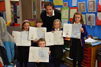 Here’s a picture of the work that the P3 class at Tolsta had done on Fright Forest – some great pictures and even lovelier smiles: