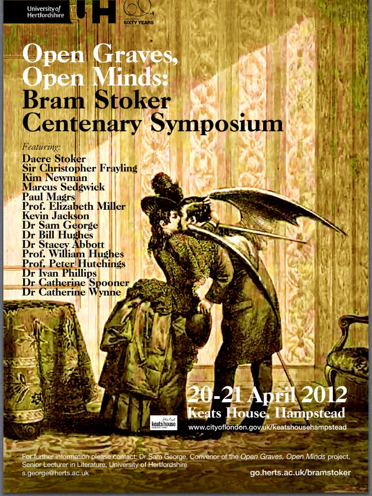 Well, next Friday and Saturday I'll be attending and speaking at OPEN GRAVES, OPEN MINDS; the Bram Stoker Centenary Symposium being held at Keat's House, London. I'm delighted to be going along and honoured to be speaking in the company of some wonderful academics and other writers including Sir Christopher Frayling and my good friend Dr Kevin Jackson.