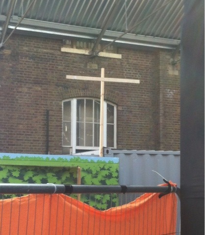 The photo of the cross? That was put up by some workmen on a site opposite out tent...