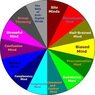 With the increasing speed of change in the hyper-connected digital ecosystem, some industrial mindsets with “status quo” types of thinking, authoritarian attitude, and bureaucratic decision-make, are outdated, turn to be a "dragger" of the business innovation and a laggard of the digital paradigm shift. More specifically, what are those anti-digital mindsets, and how to shift them to digital thinking styles?