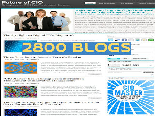 The “Future of CIO” Blog has reached 1.3+million page views with about #2800+ blog posting in 59+ different categories of leadership, management, strategy, digitalization, change/talent, etc. blog posting. The content richness is not for its own sake, but to convey the vision and share the wisdom, to inspire critical thinking and spur healthy debates. Blogging is not about writing, but about thinking and innovating the new ideas; it’s not just about WHAT to say, but about WHY to say, and HOW to say it. It reflects the color and shade of your thought patterns, and it indicates the peaks and curves of your thinking waves. Unlike pure entertainment, quality and professional content takes time for digesting, contemplation and engaging, and therefore, it takes time to attract the "hungry minds" and the "deep souls." It’s the journey to amplify diverse voices and deepen digital footprints, and it's the way to harness your innovative spirit.