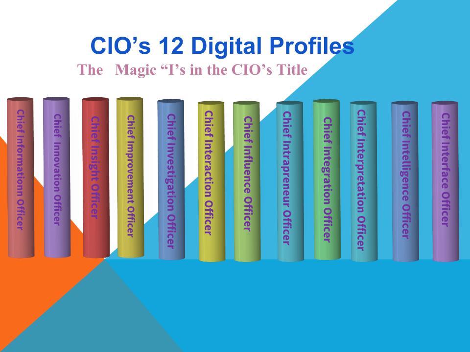 CIO as “Chief Information Officer”: Back to fundamental, IT is the information steward of the organization, and the magic “I” in CIO title implies “INFORMATION” - one of the invaluable assets in businesses today. And one of the critical responsibility for IT is to ensure the right people getting the right information at the right time to make right decisions. Because today IT is permeating into every corner of the organization, and all forward-thinking organizations across industrial sectors declare they are into the information management business. IT indeed needs to shift from “T” driven operation to “I” focused - Information, Intelligence, and Insight. And the CIO role needs to focus on both information content and context, how that information can be tapped from the underlying data and be utilized to turn it into valuable business insight and foresight. As CIOs continue to be put on the front line to run IT as a digital transformer, they need to ensure their organizations are information savvy, high-intelligent and high-effective.