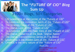 How to Define the Right People: “Hiring the right person to the right position at the right time,” is the mantra of many forward-thinking organizations. The question is how would you define the right people? The right mindset is utmost quality for being a right fit because the power of the mind is the force to change the business or even the world for better.The Quality of Experience: The better way to define experience is as “Lessons Learned.” Do you have X years experience or do you have ONE year experience X times? The pace of change is increasing, EXPERIENCE can no longer be measured quantitatively only, quality counts, dynamic counts, and learning agility counts - in mastering the full cycle of learning, de-learning and relearning. You just have to deepen the experience continually to capture the insight, or broaden your experiences to cultivate creativity or refine wisdom.Feedback - Constructive or Destructive: Nobody is perfect, we should always self-aware, accept feedback that is truthful and accurate, constructive with good intention. However, those who give negative feedback based on ignorance, misinformation, misjudgment, gossip, or even rumors, envy or revenge, earn the scorn and contempt. That being said, the QUALITY of feedback giver is crucial to the quality of feedback being given, the QUALITY is about the person’s reputation, cognition, character, integrity, insight, and intention., etc. The Systems Thinking Principles: Without the right set of System principles, the white can be taken as black, the round can be perceived as square, and the good can be translated into evil. It is utterly important that a basic understanding of what an integrative system is about. Are we here to play at a game of "Systems Thinking" with outdated and limited definitions and rules set several decades ago, or to apply the best understanding of how the system works to fix the great problems we face as systematically as we can? Systems Thinking Principles are the set of abstract and more “timeless” guidelines helping frame the questions in problem diagnosing and solving. The Sum Up of the “Future of CIO” Slideshare: The “Future of CIO” Blog has reached 1.1 million page views with #2150+ blog posting. Among 50+ different categories of leadership, management, strategy, digitalization, change/talent, etc. blog posting, Here are the NINE COREs of the “Future of CIO”!