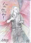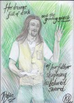 And so I wish to honour these friendships that I feel so honoured by. There are many ways of doing this – by baking a cake, singing a song, writing a letter, handcrafting something, or simply spending quality time with them. Last month I celebrated my 49th birthday in Stroud with ‘A Night of Bards’ – a gathering of storytellers, poets and singers to ‘wet the baby’s head’ of my new book, Silver Branch: bardic poems (published by Awen Publications), launched on that date. It was a special evening, brief but heart-warming and flowing with awen and camaraderie. I took photos, as did my friends, and I’ve used some of these to recreate some of the performances in what I call ‘bardic portraits’, intended to capture not an exact likeness but the energy of the performer, their presence. I incorporate a key phrase from their contribution, and have slowly worked my way through the dozen or so performers over the last month. It has been a nice way to remember the evening, enjoying it again like a fine feast, but in particular, a chance to focus in on each bard’s unique quality and talent. To bring awareness to these remarkable friends and the skein of friendships that we share.