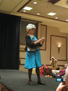 One of the highlights was the Concealed Gun Fashion Show, sponsored by the Rocky Mountain Chapter of Mystery Writers of America. Here’s author Parnell Hall trying to get a concealed knife out of his lipstick.
