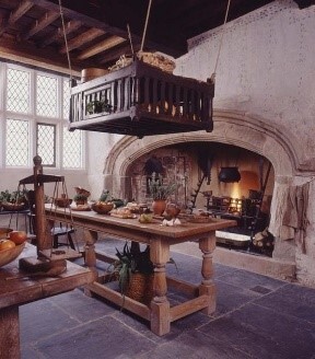 Aside from open fires, candles were used as portable and quick light sources. Candles made of wax were expensive so they would be made of tallow, or animal fat in simple lamps. Atop the open fire would be a large cast iron pot. This would be used alongside the bread oven to produce most meals. Personally, I too could live off stews and freshly baked bread. The fireplace would be settled in an ‘inglenook’ as it was one of the main features of the house. Usually opposite the inglenook would be large wooden tables with cast iron and pewter pots. Often with wooden plates and bowls beside them. In The Witch’s Daughter, Bess and her family live in what is then a new workers cottage. It’s extremely similar to the house I grew up in, just on a slightly smaller scale.