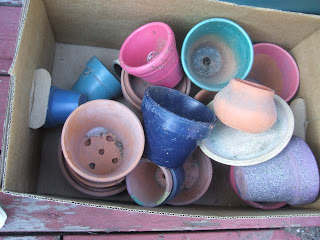Here is the box of small flower pots. I am thinking about growing some kitchen herbs in them.