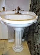 Okay for a while I have been wanting to update the kids bathroom with a pedestal sink. The cabinet that is in there is too large for the space and it gets wet when the kids take a shower. So I have been getting estimates from contractors and nagging my husband to replace it.