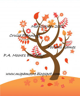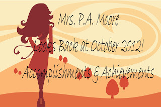 My husband traveled for work for almost two weeks and returned home safely. Blessings!I kept everything running smoothly at home, I think. I've two teenagers at home who are too young to drive but are very active in after school activities and sport. I found myself running back and forth to the high school.I started cleaning out my closet.Sold some items on ebay. Earned $200. The fees on ebay are getting ridiculous. Ebay now charges a final value fee on the shipping fees. Sigh!Visited my mom and dad.Stayed on low carb, high veggie diet for two weeks. Fell off but getting back to it.Took my car to get inspected and tuned up. Saved the money to pay for it. So I don't have to charge it. Smile!Reread my favorite erotic romance The Twelve Dancing Princesses published by Harlequin Spice.Discoverd pinterest and began adding pictures to my pinterest pages. http://pinterest.com/mspamoore/Began planning my next vacation with hubby and teens. February? Next Fall?Continued reading CruiseCritic.com forums for information on various cruises.Kept up with Twitter. participated in twitter chat with Leslie Blodgett and nordstrom beauty.Began preparing entry for next RWA writing contest.Placed 2nd in the Duel in the Delta RWA Contest in the Romantic Suspense category.Following inspirations from Ivanya Vizant online, on twitter and her new show.