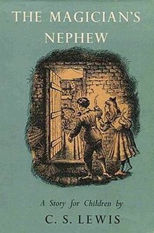 It follows the adventure of Digory Kirke and Polly Plummer who stumble by accident, into Digory's uncle's study where he tricks them into traveling between worlds as his human guinea pigs. On their adventures they meet Jadis, who eventually becomes the evil witch who causes trouble for Narnia later, and they come into Narnia just as it is being formed by Aslan. Digory eventually grows up to be Professor Kirke in whose house Peter, Susan, Edmund, and Lucy eventually stay and whose wardrobe they take to get into their adventure in Narnia.