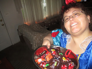 I had wanted to wear it somewhere to really make it count for growth and achievement, and there just wasn't anywhere to go. I had been thinking karaoke, but before Halloween I had been invited to another karaoke thing, so really, all I did was hand out candy. There were two things about that.