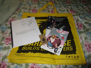 I had not pre-purchased a ticket, so had to get one there. That line directs you into the celebrity area, but then you are in Artists Alley, where there were many familiar faces. I did not socialize much, not having a voice still, but it felt good seeing them. I also got Dark Horse swag and saw some amazing Lego creations, along with the costumes I mentioned yesterday. That's some good stuff.