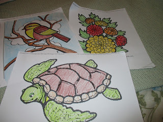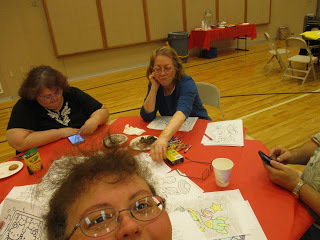 I wish I'd had a better idea of how many would have come. That would have solved the budget issue of both getting blueberries and being able to have 64-count instead of 24-count boxes of crayons, because I had eight tables, and we could have made it with four. But each of the eight tables had eight each of three different coloring sheets at various levels of difficulty. Oh, and there were colorful Life Savers to act as lozenges.
