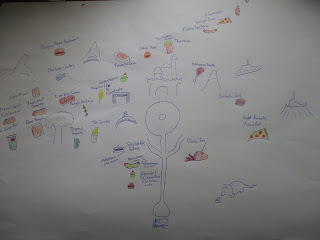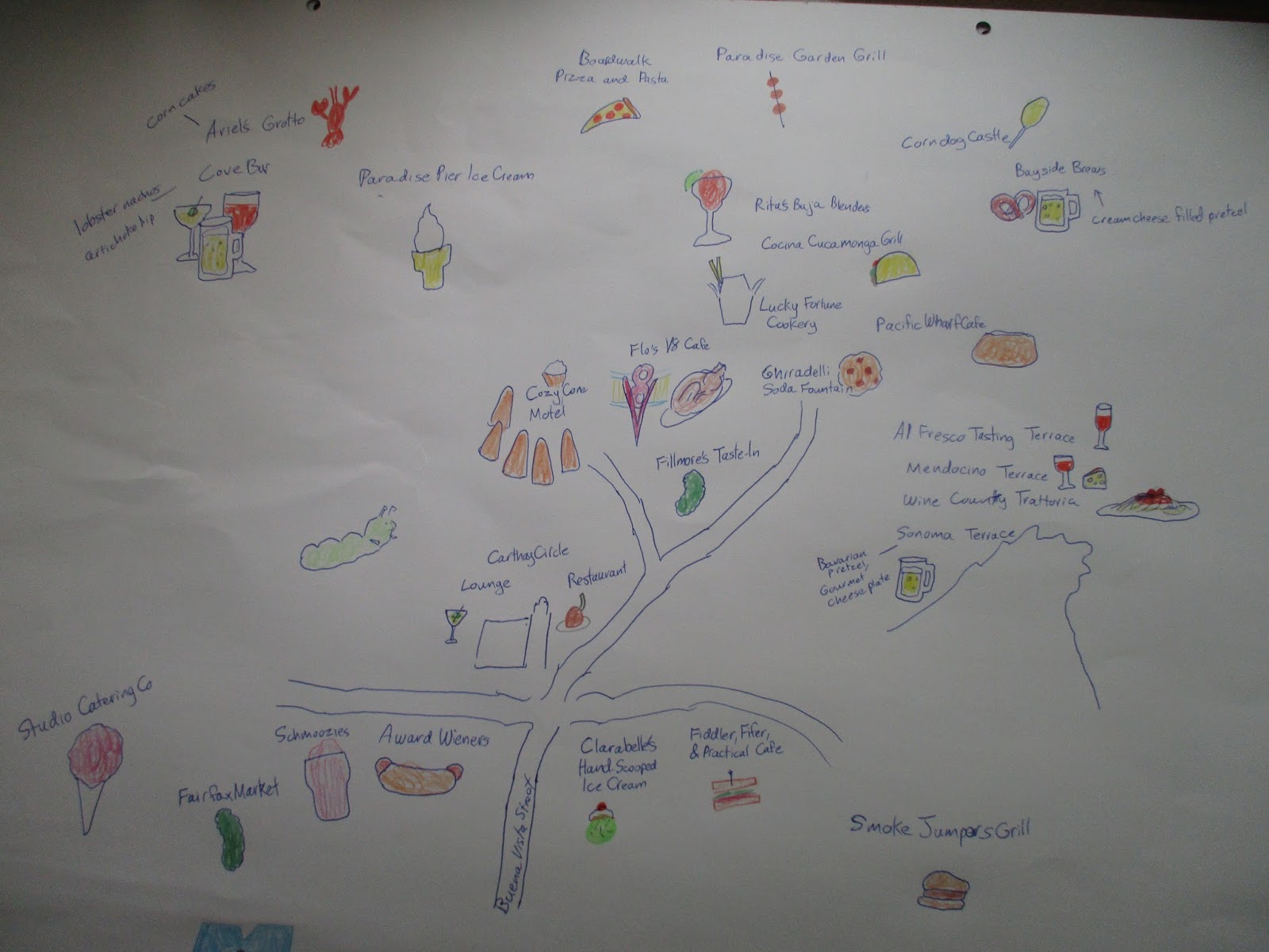 As a busy person, it could not possibly be the best use of my time to draw a food map of Disneyland, but her birthday was coming up, and I just went for it, ending up with two maps, because I also did the California Adventure side.