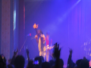 I have included some extra photos (even though none of them are great), because I wanted to give some idea of the effect on the crowd. Yes, people enjoyed both acts, but the dance area kept filling up more and more the longer Stone In Love played. I thought we'd hit the height of romance when a couple in front of me started dancing with each other instead of next to each other on "Lights", but that was just the prelude. Many more bodies came together on "Open Arms".