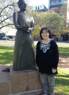 Here I am in the city beside a statue of the author, Catherine Helen Spence, who was also known as The Grand Old Woman of Australia. As well as writing novels, she became an advocate for child welfare reform, and also became Australia's first female political candidate. She's someone we can be proud to claim in our Adelaide heritage. Although I'm not sure I would have lived up to her standards of merit if I'd known her, she did have a sense of humour.