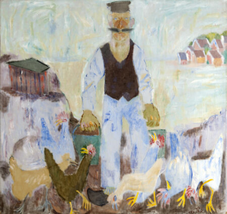 “We failed to find any previous depiction of seborrhoeic dermatitis in our previous researches or in the medical literature. The redness of the face and nose of the chicken handler here echoes back to the comb and wattles of the roosters. The question whether Ragnar Sandberg painted intentionally a cutaneous facial condition such as seborrhoeic dermatitis remains unanswered.”