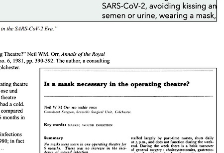 Questions of masks and spittle, and separately—and startlingly—the question of whether masks are necessary in ordinary, non-pandemic times in hospital operating rooms. Four medical studies covering those topics get a good looking at in the “Wear a Mask?” column in the special Small Animals issue (vol. 26, no 3) of the Annals of Improbable Research.