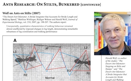 Ants on stilts, and Wolf on ants on stilts, and ants trapped and hunkered in an old bunker have the spotlight in three ant research studies featured in the “Ants Research” column in the special Small Animals issue (vol. 26, no 3) of the Annals of Improbable Research.