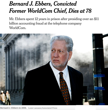 The New York Times and the AP report the death of Ig Nobel Prize winner Bernard Ebbers: