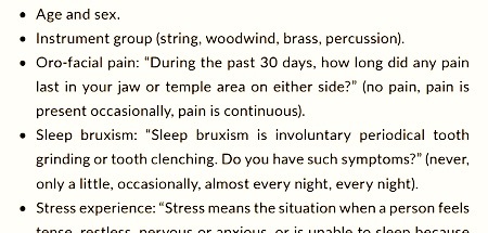 Aki Savolainen writes: “I found this one article my father was working on a year ago, which found out that musicians with sleep bruxism experience pain related to the severity of their symptoms (surprise), and the instrument they happen to be playing has no effect on the amount of pain experienced.”