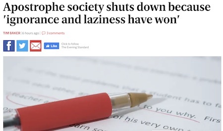 “‘Laziness has won’: apostrophe society admits its defeat” [ The Guardian ]