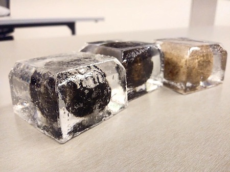 Wombat poo, here encased in lucite for display purposes. David Hu’s second Ig Nobel Prize honored the research as to how and why wombat poo typically has a cuboid shape. Photo: Alex Ip.