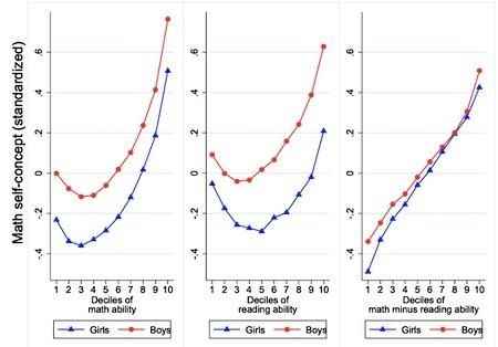 “we show that female students who are good at math are much more likely than male students to be even better in reading. As a consequence, the difference between 15-y-old students’ math and reading abilities, which is likely to be determined by earlier socialization processes, can explain up to 80% of the gender gap in intentions to pursue math-studies and careers.”
