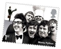 “The Monty Python team of six – Graham Chapman, John Cleese, Terry Gilliam, Eric Idle, Terry Jones and Michael Palin – created surreal comedy sketch show ‘Monty Python’s Flying Circus’ in 1969. This stamp shows John Cleese as a civil servant in the recurring sketch ‘The Ministry of Silly Walks’”.