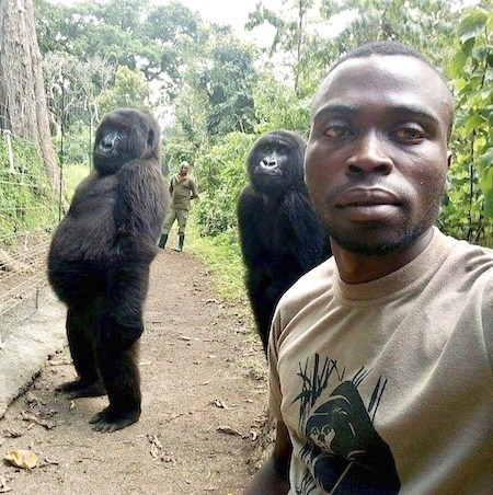 The photo has appeared in numerous press accounts, including a BBC report with the headline “Gorillas pose for selfie with DR Congo anti-poaching unit“.