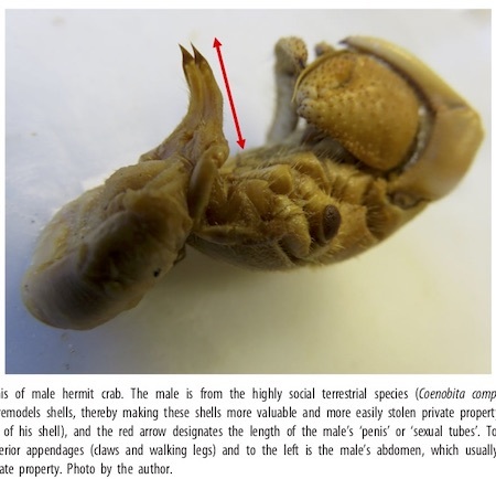 Sex, economics, evolution, and stuckness all play roles in this new study about the evolution of larger penises in hermit crabs: