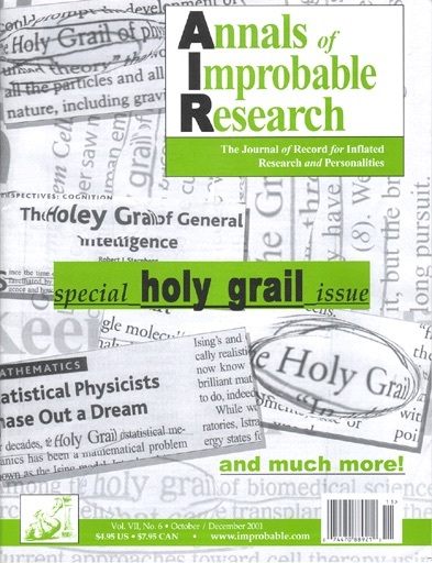 A talk I gave at the AAAS 2008 Annual Meeting in Boston, “My Search for the Holy Grail,” was arguably the high point of my career. I recounted my adventures to an audience of hundreds that filled one-and-a-half ballrooms, and could easily have filled two ballrooms had the back portion of the room not been reserved for tango lessons—an exercise, in my estimation, of dubious scientific value. A year later, I collaborated with a younger grail investigator—a scholar of great promise who has since abandoned the calling—on what turned out, until today, to be my last printed words on the subject, “A Crusade Against the Quest for the Holy Grail.”