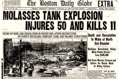 For more of the history of that flood see Cara Giamo’s “The Boston Molasses Flood Is Worth Taking Seriously” in Atlas Obscura, and Jennifer Ouelette’s “Incredible physics behind the deadly 1919 Boston Molasses Flood” in New Scientist.