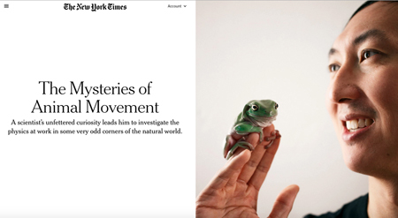 Dr. Hu is a mathematician in the Georgia Tech engineering department who studies animals. His seemingly oddball work has drawn both the ire of grandstanding senators and the full-throated support of at least one person in charge of awarding grants from that bastion of frivolity, the United States Army…. [He] is completely serious when he describes Dr. Hu as a scientist of “profound courage and integrity” who “goes where his curiosity leads him.”