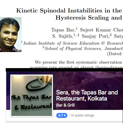 The existence of a new physics research study is a reminder that Tapas Bar, the physics researcher, is not a tapas bar, though both are in the city of Kolkata.