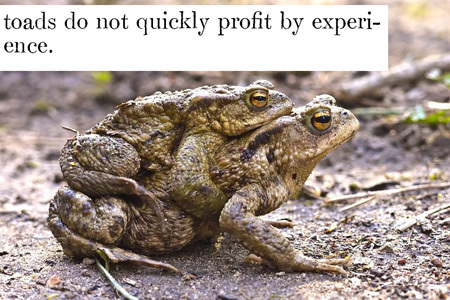 Toads, some of them, are capable of dramatic action. Here are two examples, one old, one not so old, from the scientific literature.